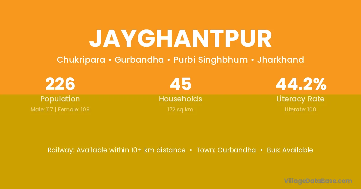 Jayghantpur village has a total population of 226 people, of which 117 are males and 109 are females.