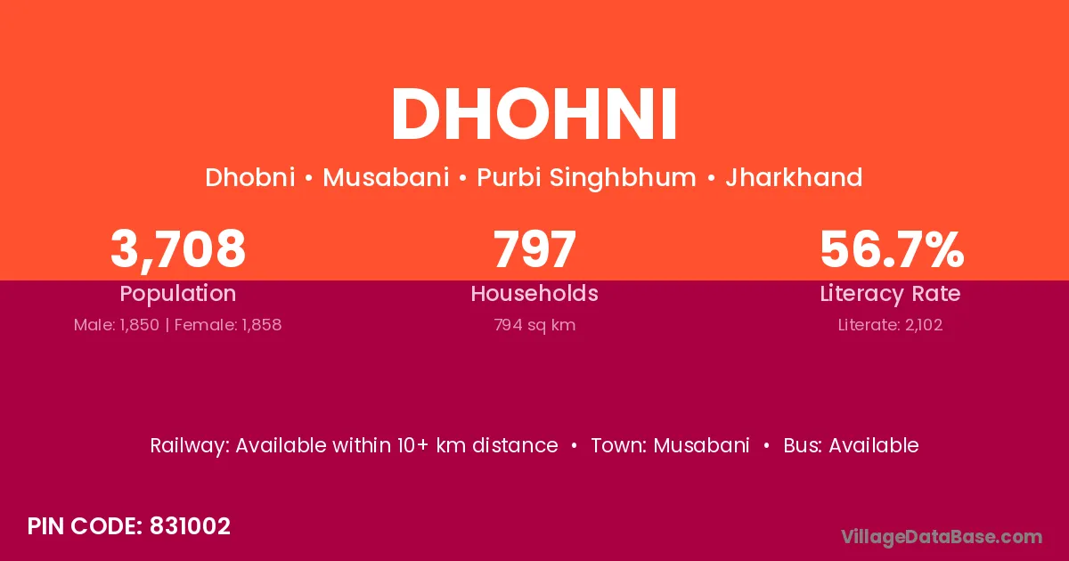 Musabani is the nearest town to Dhohni village for major economic activities