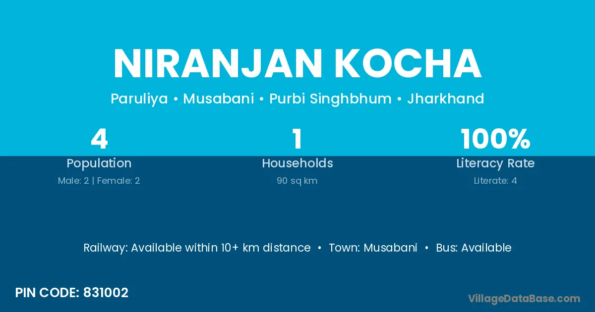 Musabani is the nearest town to Niranjan Kocha village for major economic activities