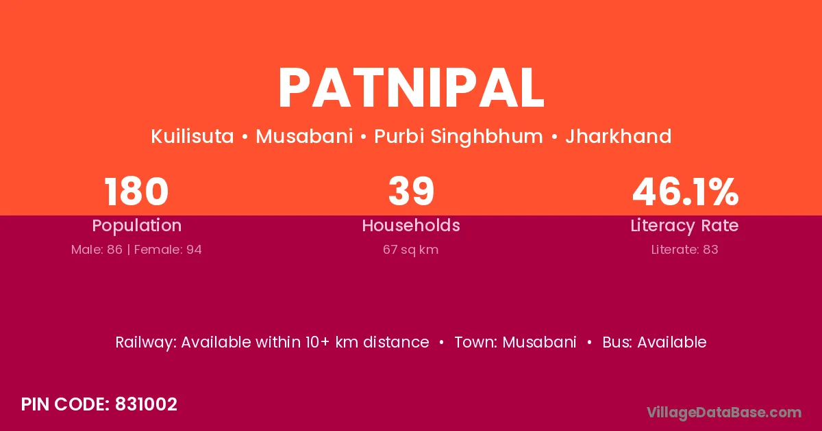 According to Census 2011 information, the village code of Patnipal village is 831002.
