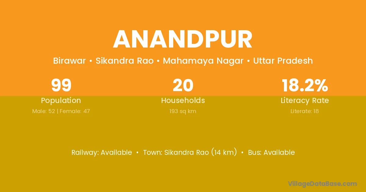 Anandpur village has a total population of 345 people, of which 170 are males and 175 are females.