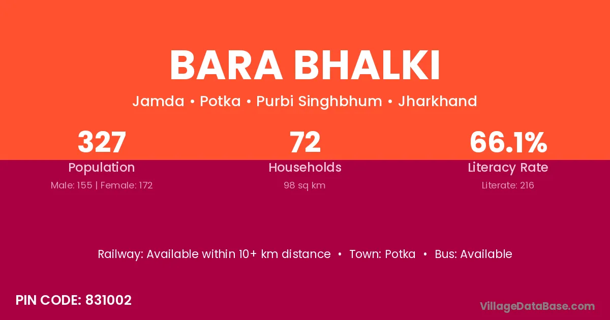 Potka is the nearest town to Bara Bhalki village for major economic activities