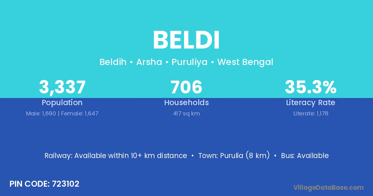 According to Census 2011 information, the village code of Beldi village is 832102.