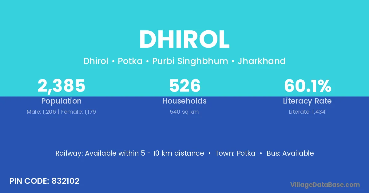 Dhirol village is located in the Potka Subdivision of the Purbi Singhbhum district in Jharkhand .