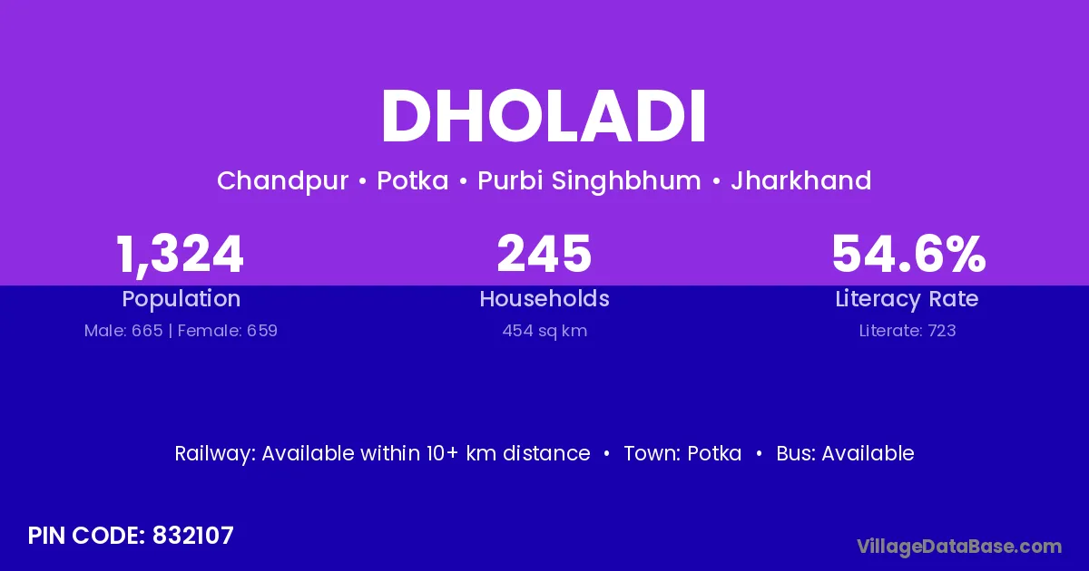 Dholadi village is located in the Potka Subdivision of the Purbi Singhbhum district in Jharkhand .