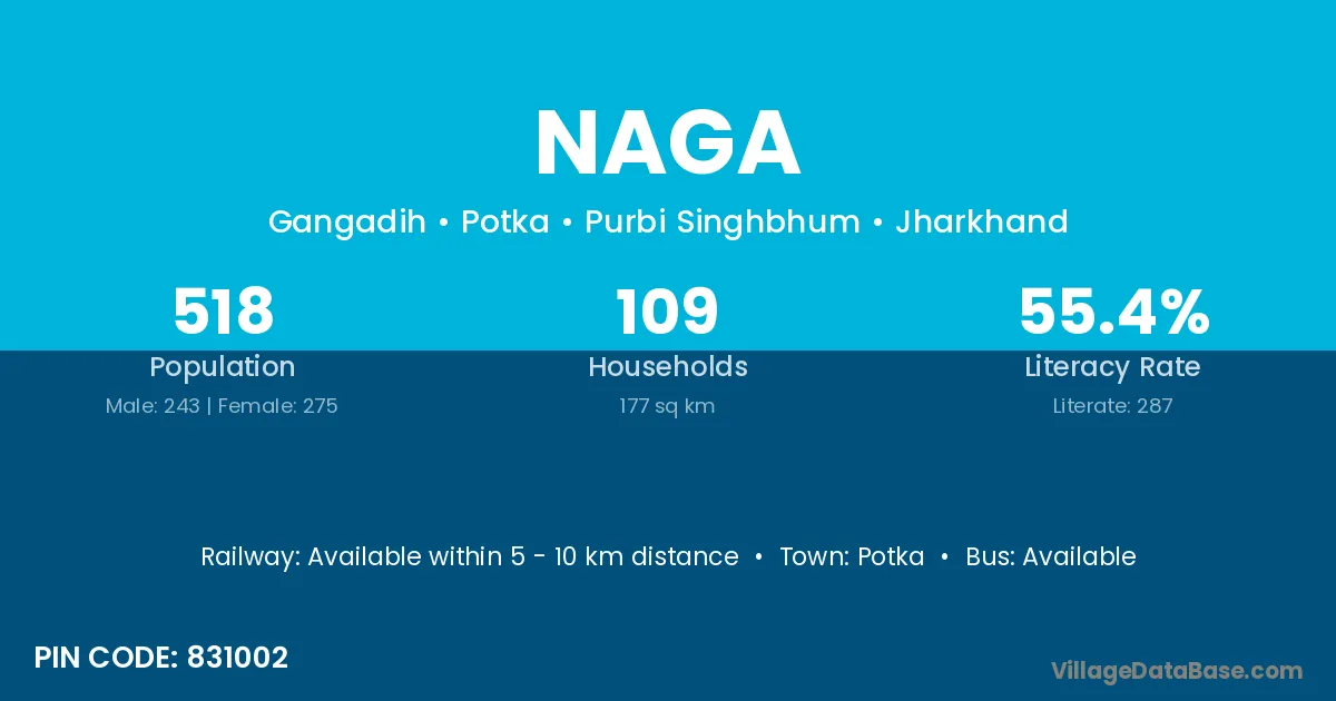 Naga village is located in the Potka Subdivision of the Purbi Singhbhum district in Jharkhand .