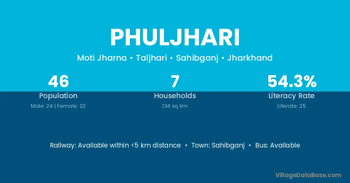 Phuljhari village has a total population of 421 people, of which 206 are males and 215 are females.