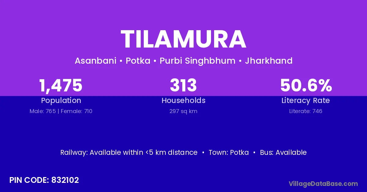 Tilamura village has a total population of 1,475 people, of which 765 are males and 710 are females.