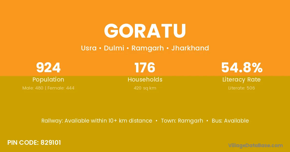 Goratu village has a total population of 924 people, of which 480 are males and 444 are females.