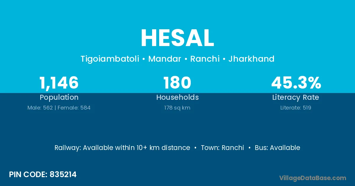 Hesal village has a total population of 1,037 people, of which 549 are males and 488 are females.
