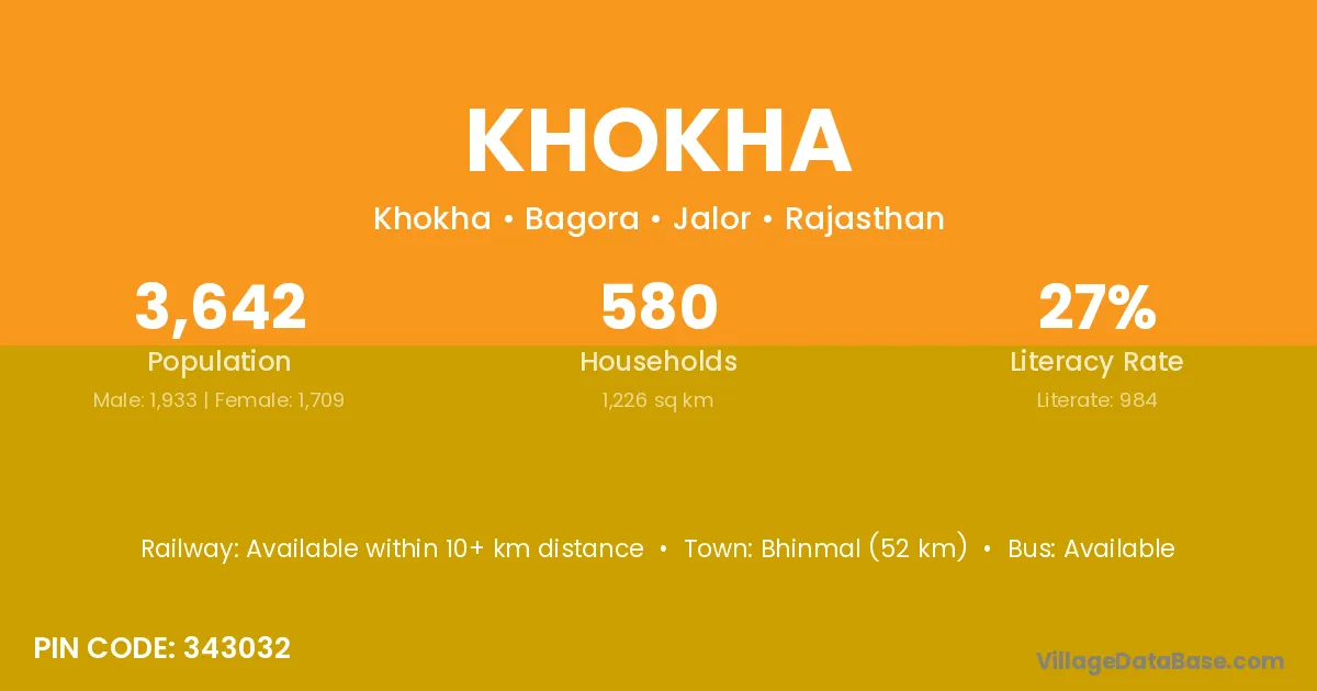 Khokha village has a total population of 1,262 people, of which 653 are males and 609 are females.