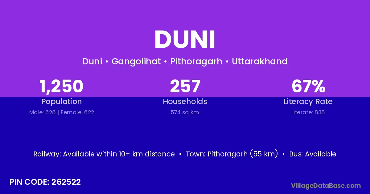 According to Census 2011 information, the village code of Duni village is 826325.