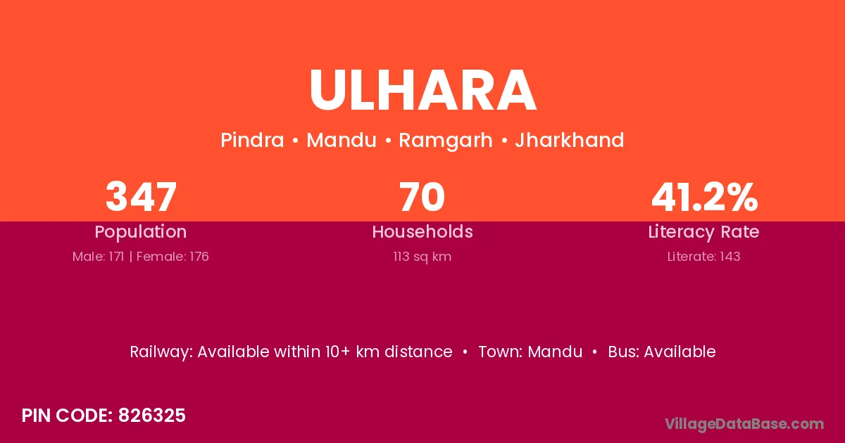Ulhara village has a total population of 347 people, of which 171 are males and 176 are females.