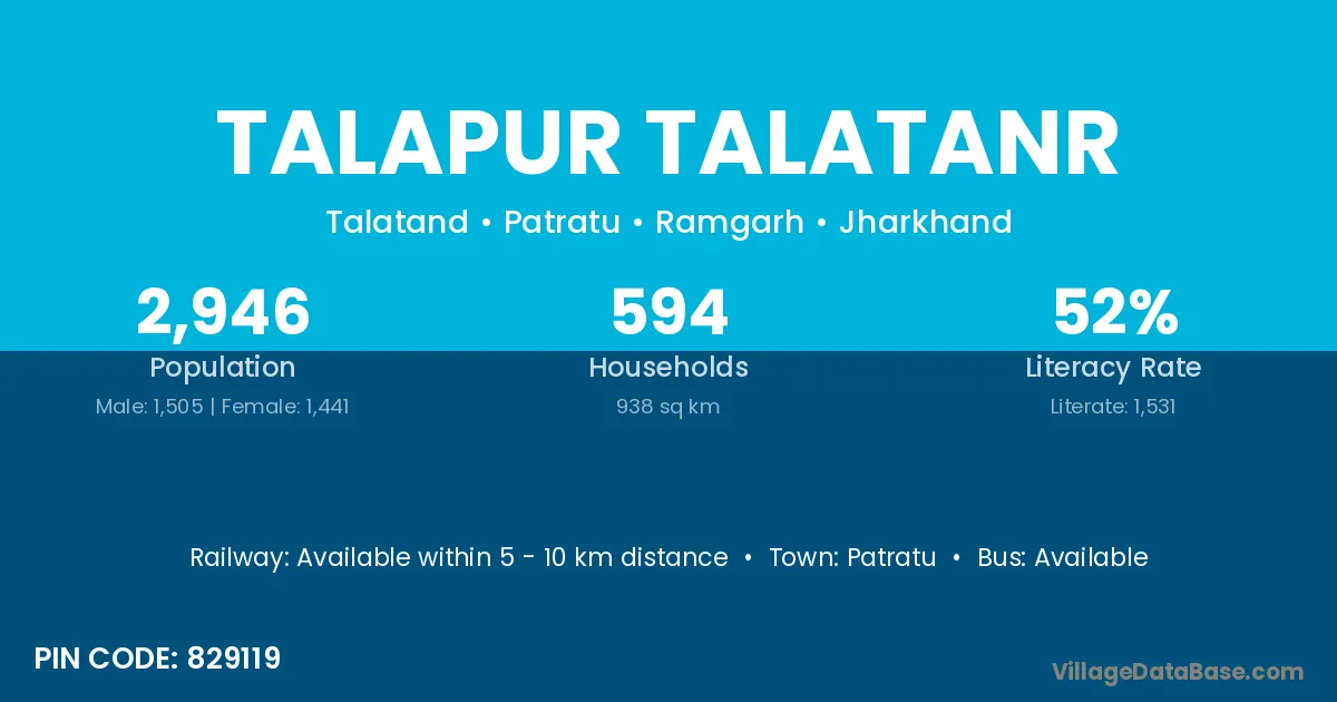 Patratu is the nearest town to Talapur Talatanr village for major economic activities
