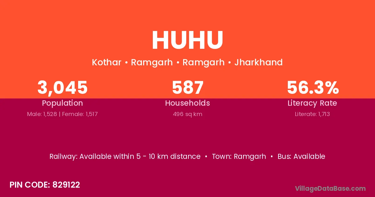 Ramgarh is the nearest town to Huhu village for major economic activities