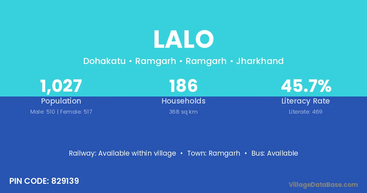 Lalo village is located in the Ramgarh Subdivision of the Ramgarh district in Jharkhand .