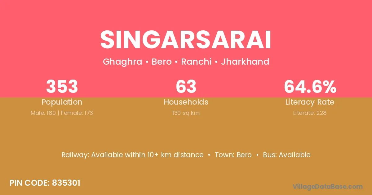 According to Census 2011 information, the village code of Singarsarai village is 835301.