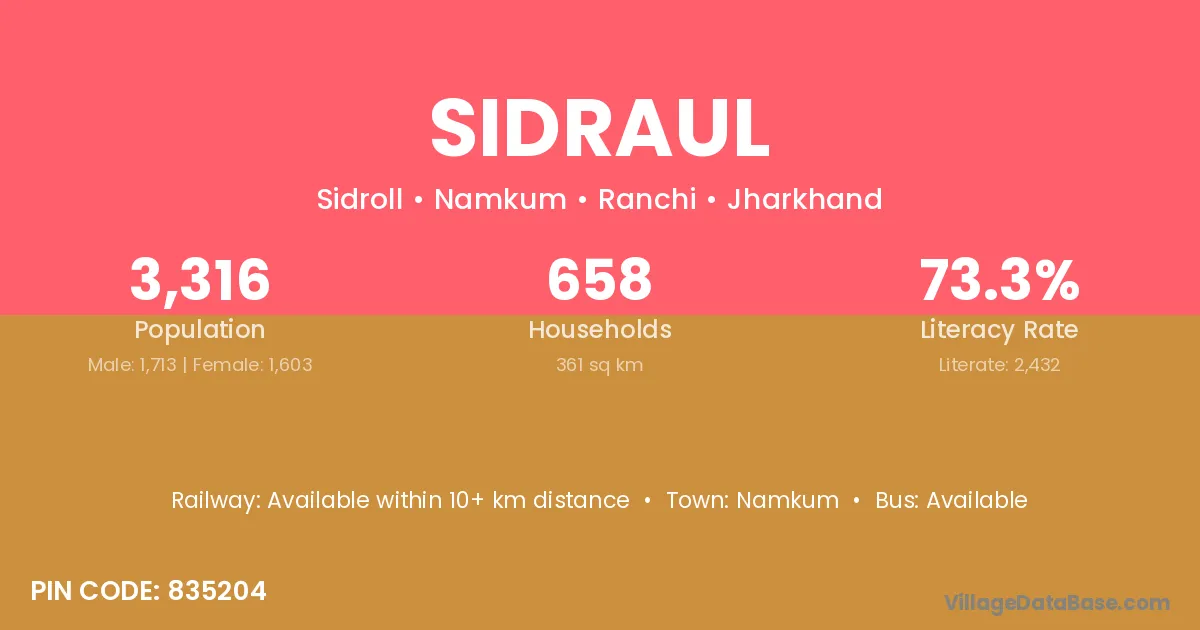 Ranchi is the nearest town to Sidraul village for major economic activities