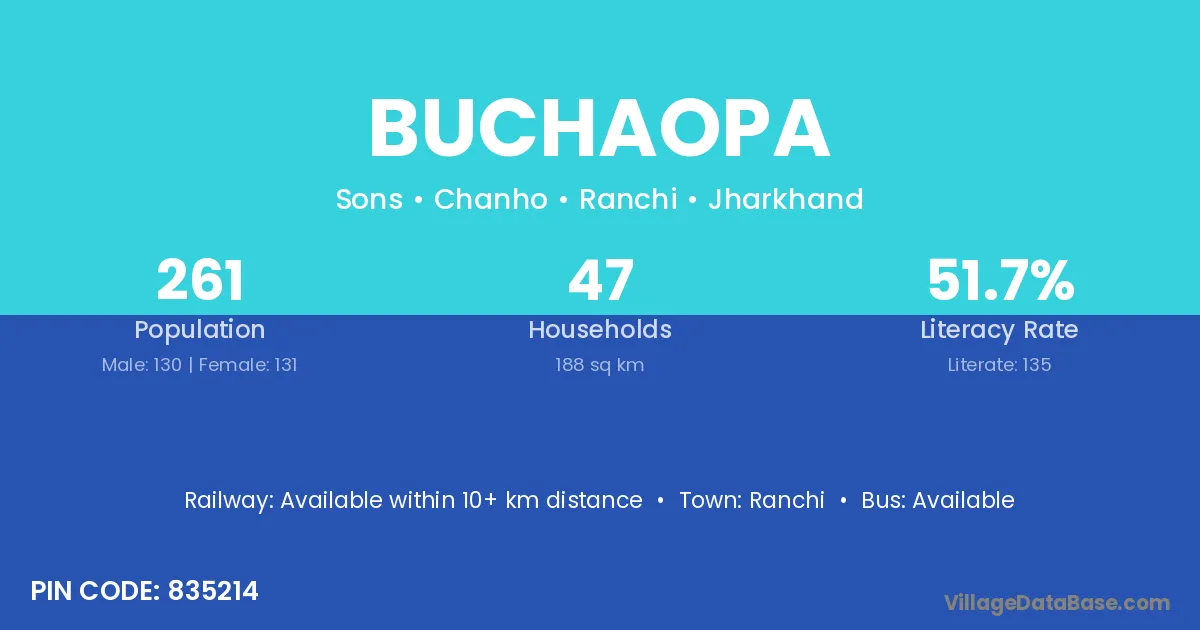 Ranchi is the nearest town to Buchaopa village for major economic activities