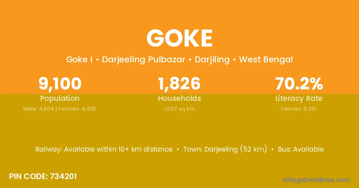The literacy rate of Goke village is 65.57%. Male literacy stands at 73.54% and female literacy at 57.21%.