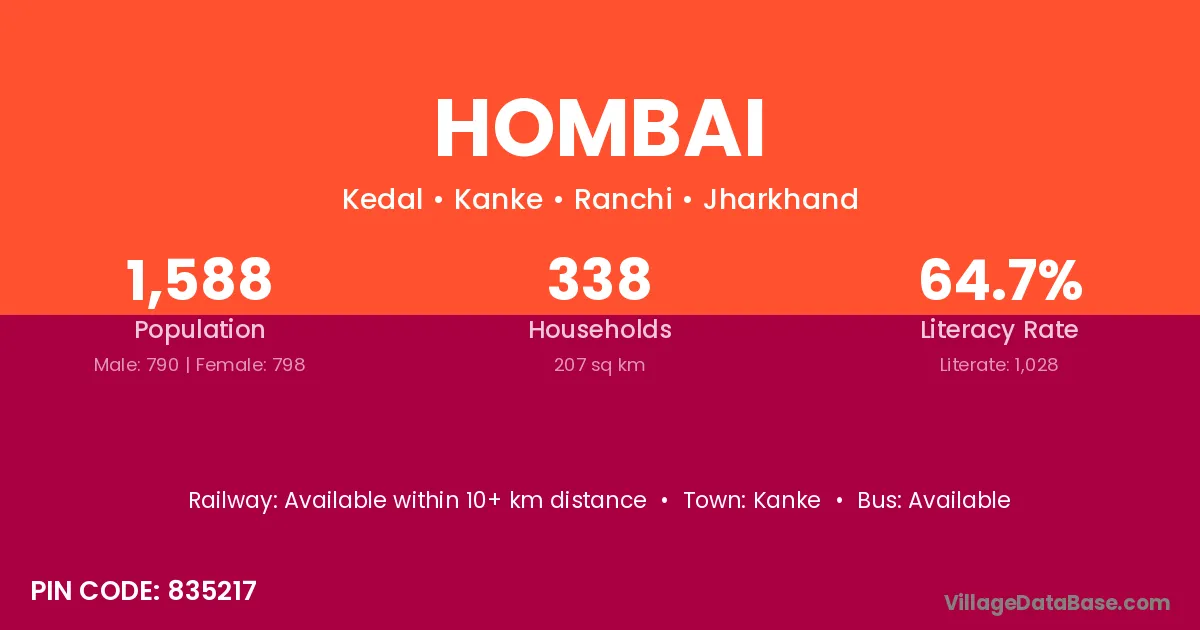 Hombai village has a total population of 1,588 people, of which 790 are males and 798 are females.