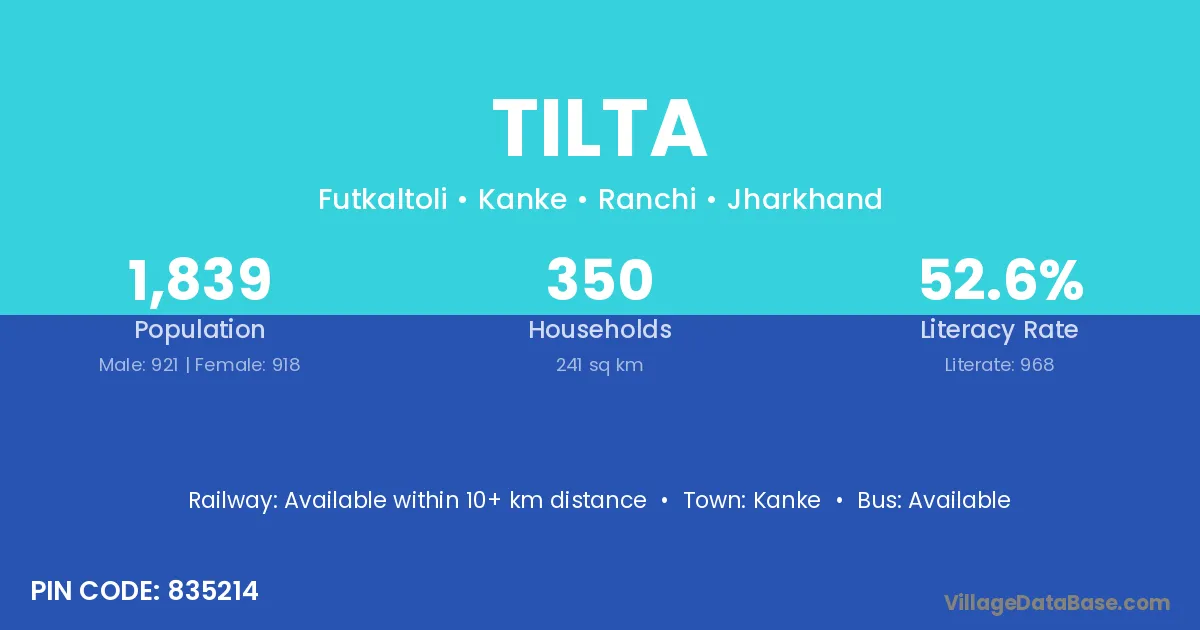 According to Census 2011 information, the village code of Tilta village is 835214.