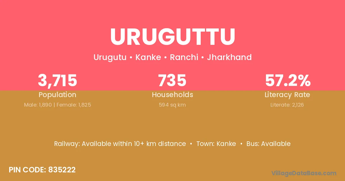 Uruguttu village has a total population of 3,715 people, of which 1,890 are males and 1,825 are females.
