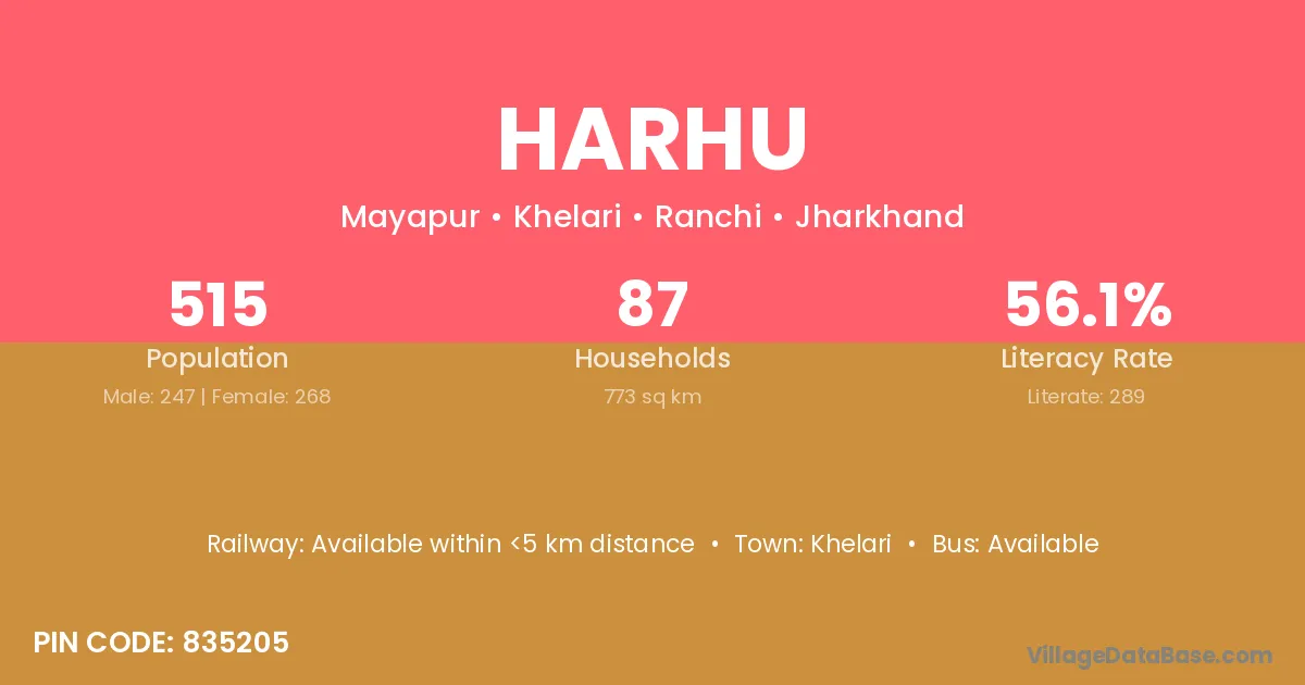 Harhu village has a total population of 515 people, of which 247 are males and 268 are females.