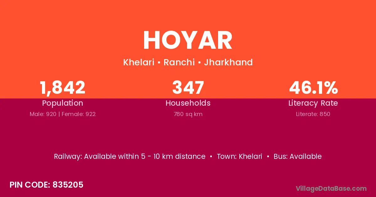 Hoyar village has a total population of 1,842 people, of which 920 are males and 922 are females.