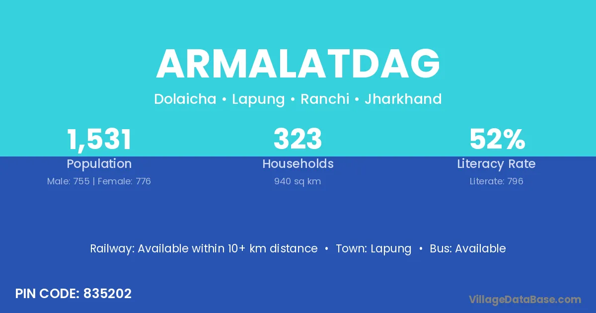 Armalatdag village has a total population of 1,531 people, of which 755 are males and 776 are females.