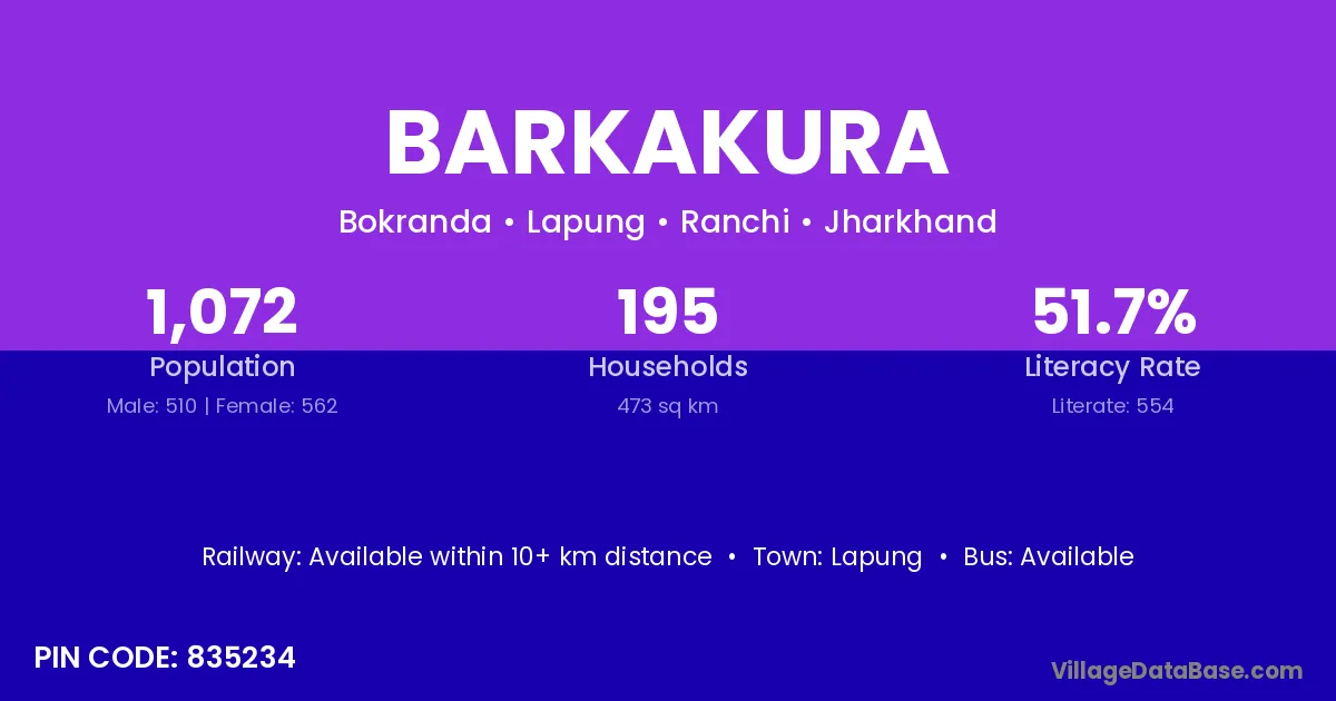 According to Census 2011 information, the village code of Barkakura village is 835234.