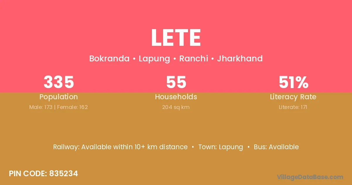 According to Census 2011 information, the village code of Lete village is 835234.