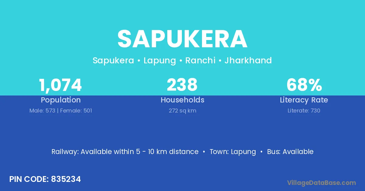 Sapukera village has a total population of 1,074 people, of which 573 are males and 501 are females.