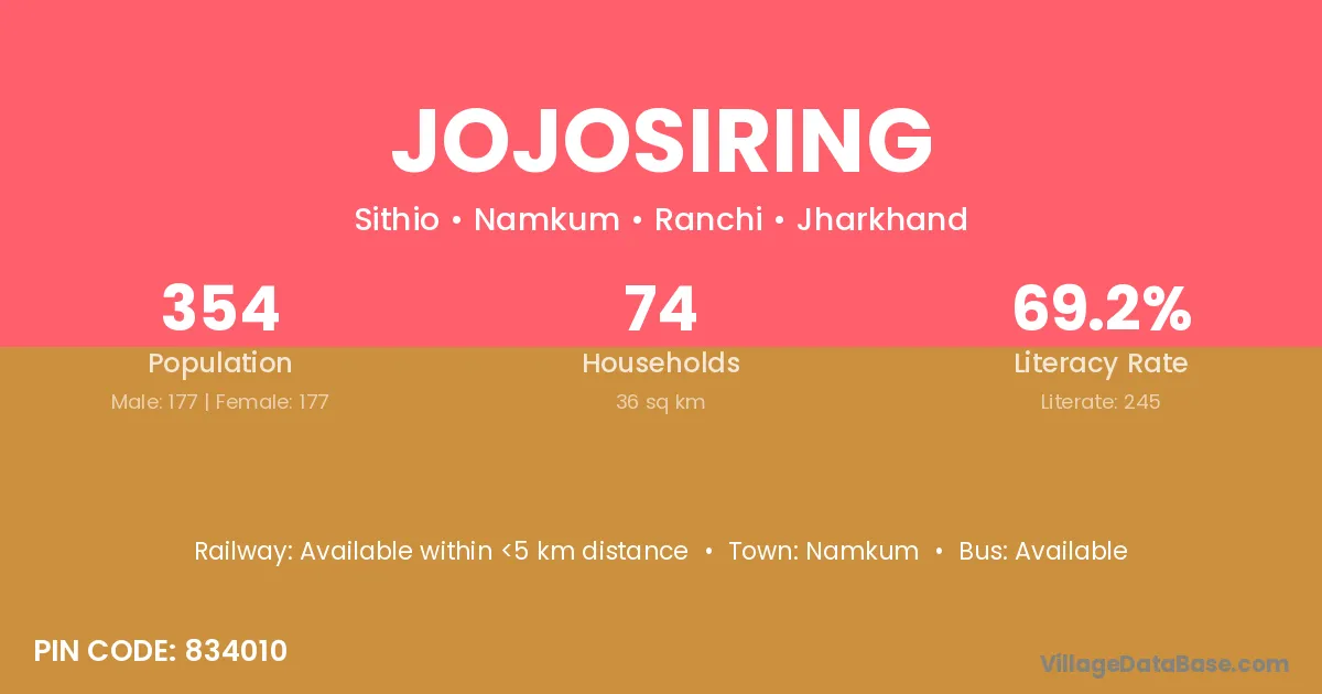 Jojosiring village has a total population of 354 people, of which 177 are males and 177 are females.