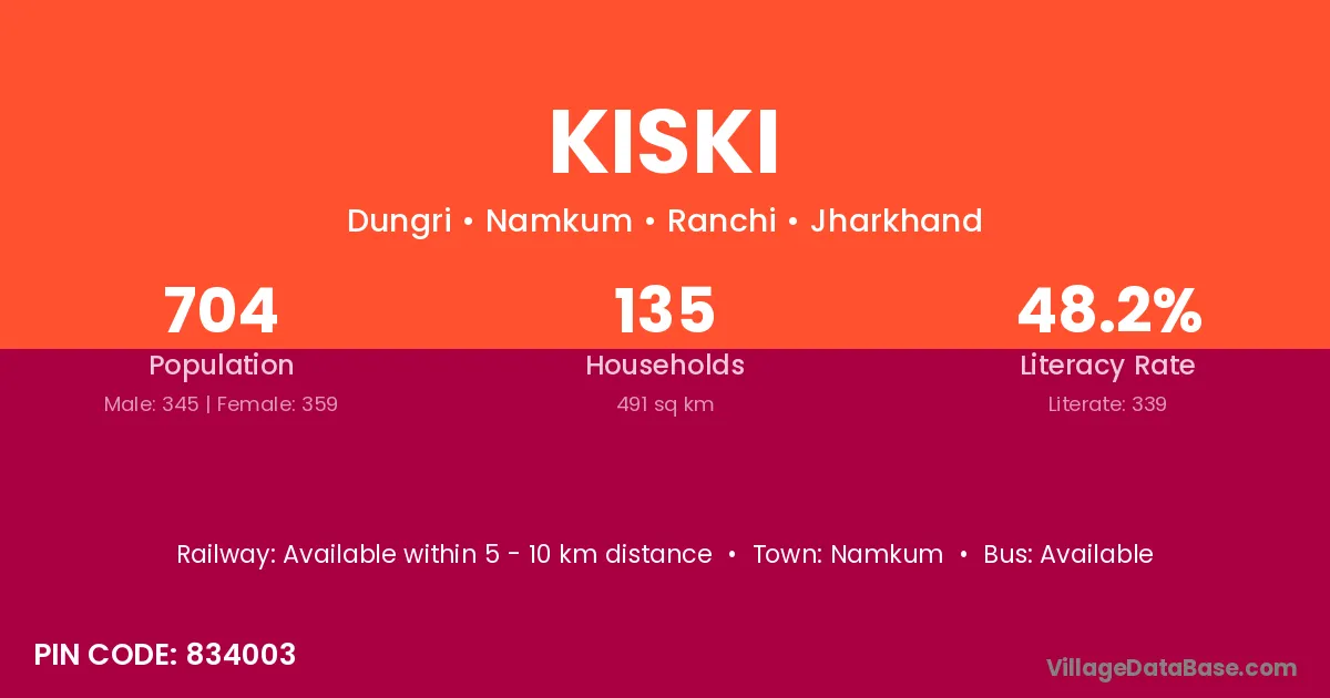 Kiski village has a total population of 704 people, of which 345 are males and 359 are females.