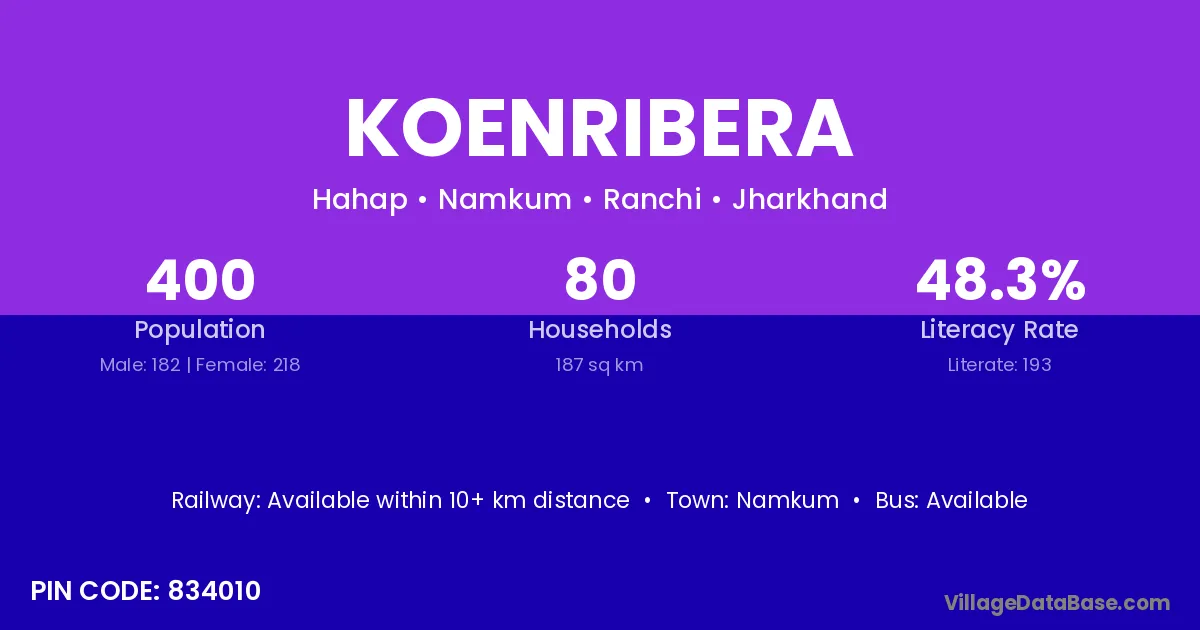 According to Census 2011 information, the village code of Koenribera village is 834010.