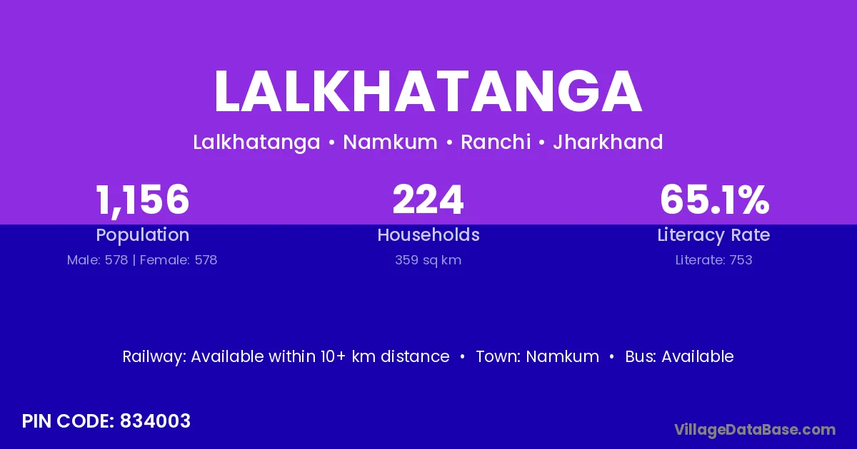 Lalkhatanga village has a total population of 1,156 people, of which 578 are males and 578 are females.