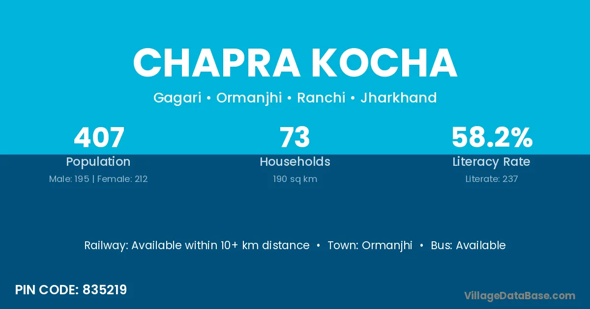 Ormanjhi is the nearest town to Chapra Kocha village for major economic activities