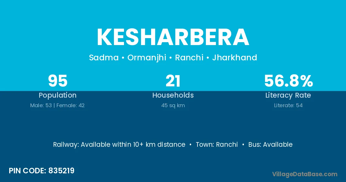 Kesharbera village has a total population of 95 people, of which 53 are males and 42 are females.