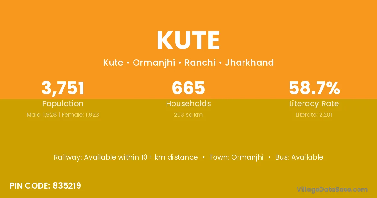 Ormanjhi is the nearest town to Kute village for major economic activities