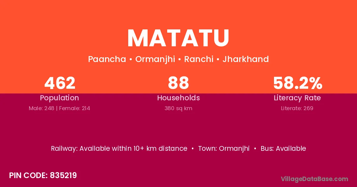 Ormanjhi is the nearest town to Matatu village for major economic activities