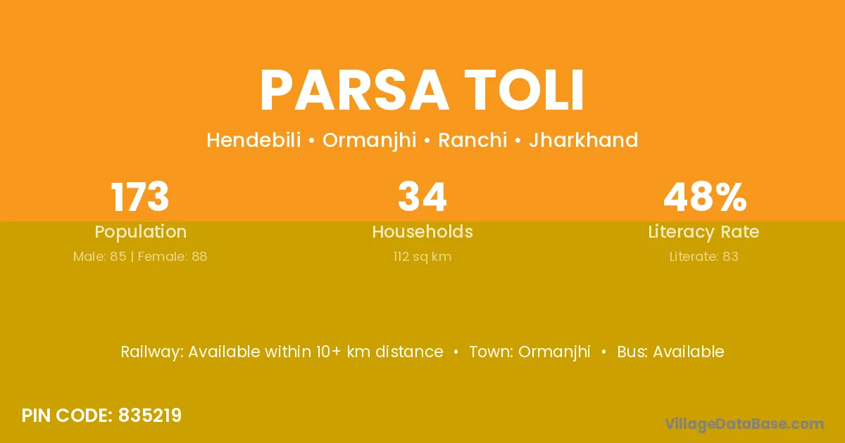 Parsa Toli village is located in the Ormanjhi Subdivision of the Ranchi district in Jharkhand .