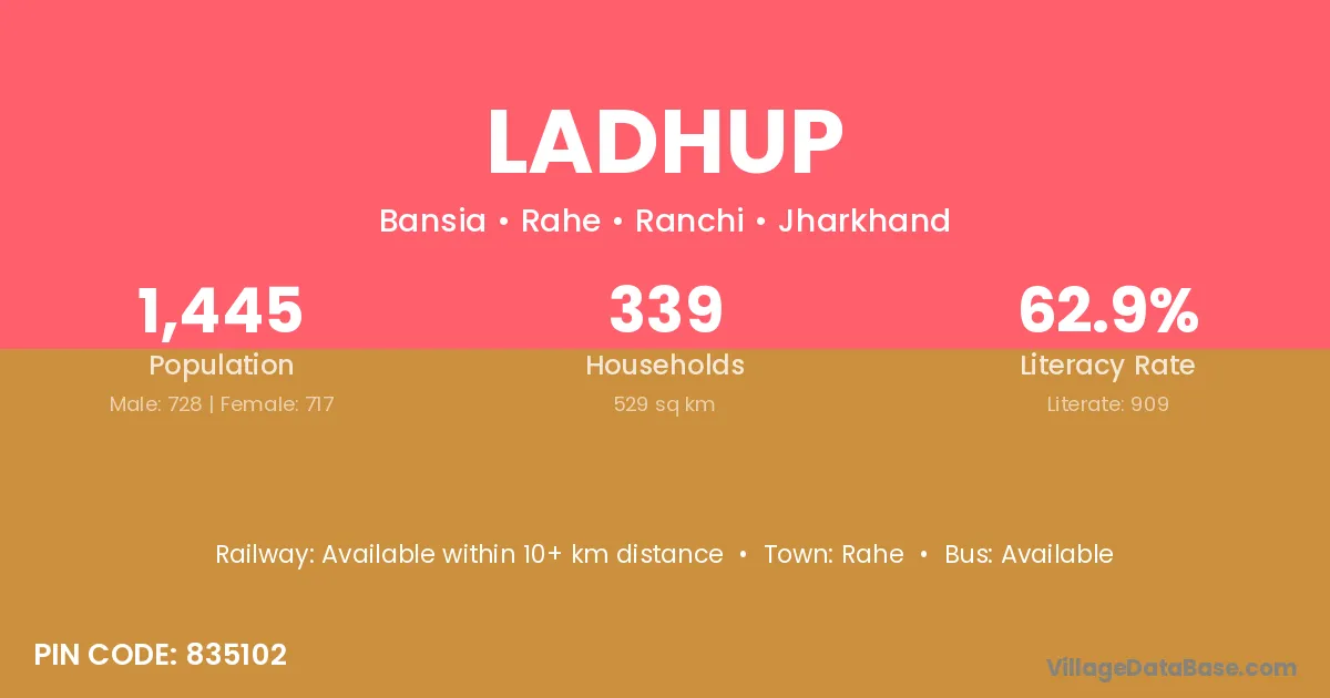 According to Census 2011 information, the village code of Ladhup village is 835102.