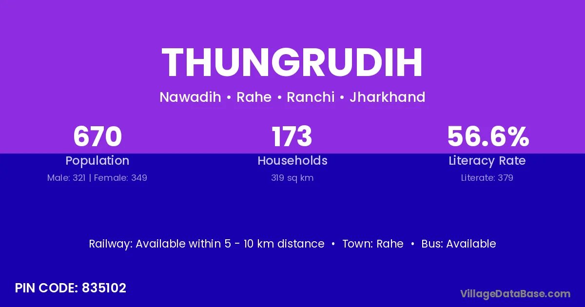 Thungrudih village has a total population of 670 people, of which 321 are males and 349 are females.