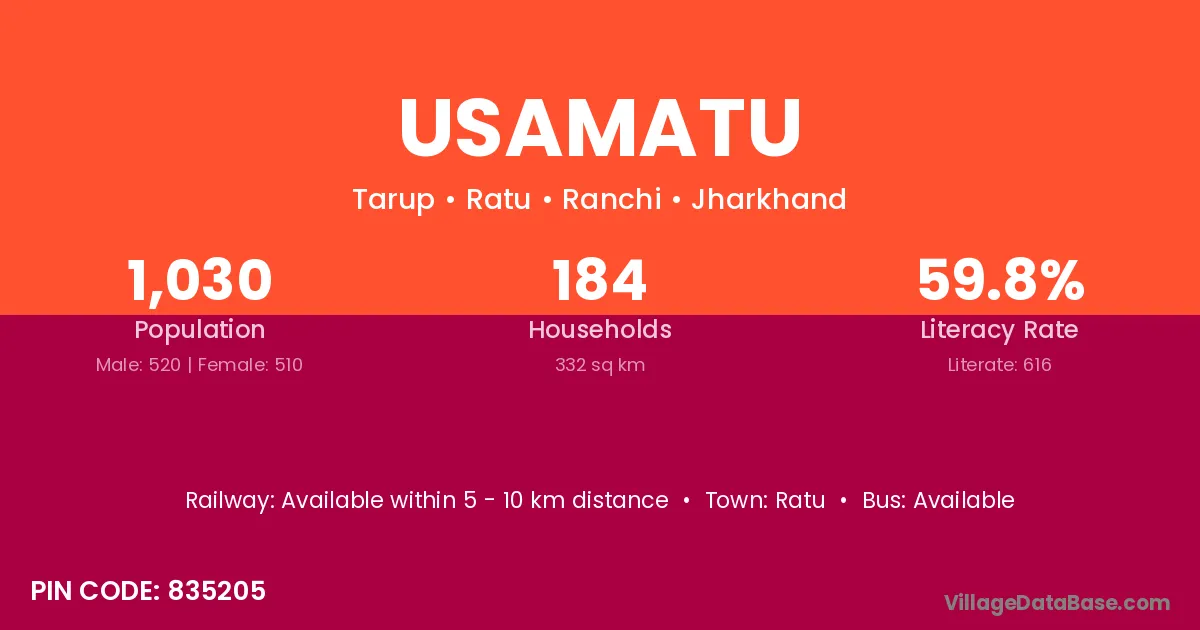 Usamatu village has a total population of 1,030 people, of which 520 are males and 510 are females.