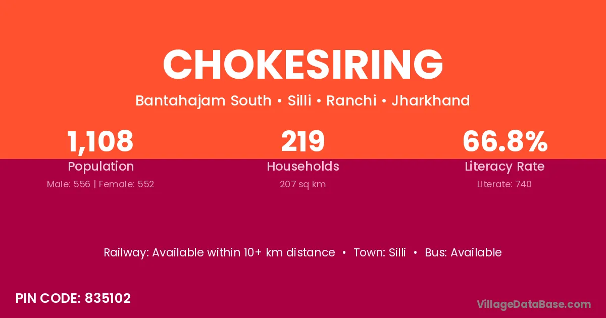 According to Census 2011 information, the village code of Chokesiring village is 835102.