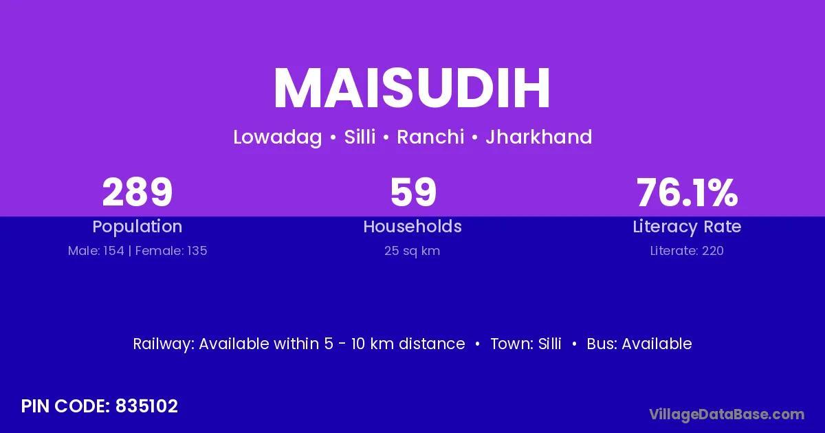 Maisudih village has a total population of 289 people, of which 154 are males and 135 are females.