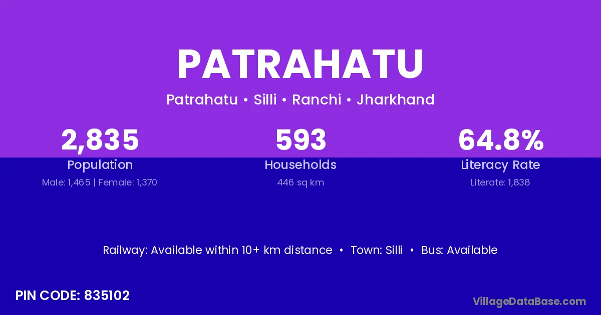 According to Census 2011 information, the village code of Patrahatu village is 835102.