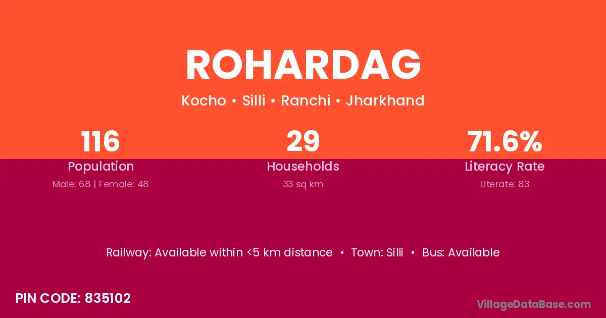 According to Census 2011 information, the village code of Rohardag village is 835102.