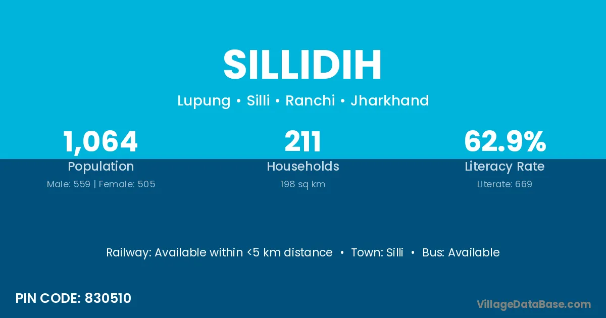 Sillidih village has a total population of 1,064 people, of which 559 are males and 505 are females.